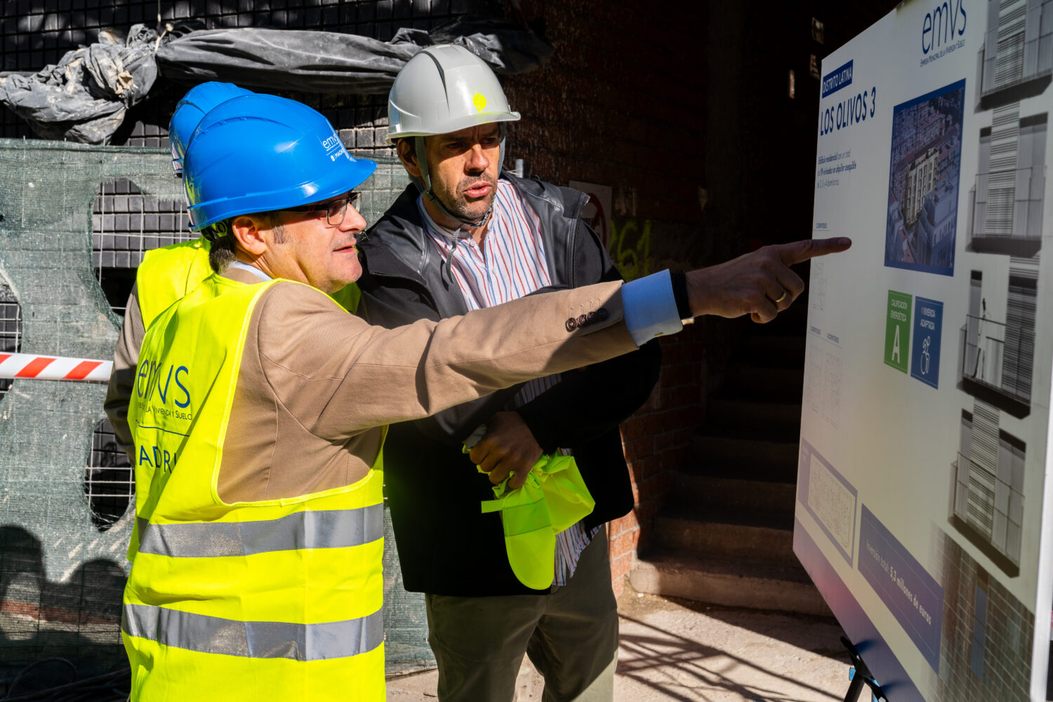 El Ayuntamiento de Madrid, a través de la Empresa Municipal de la Vivienda y Suelo de Madrid (EMVS Madrid), afronta la fase final de la construcción de Olivos 3 y Olivos 4, dos promociones de viviendas en Latina que sumarán 67 nuevos pisos públicos a la capital. Así lo ha anunciado el delegado de Políticas de Vivienda y presidente de EMVS Madrid, Álvaro González, tras visitar el final de las obras de fachada, acompañado del concejal de Latina, Alberto González. El delegado ha destacado el esfuerzo presupuestario que el Gobierno municipal está realizando “para aumentar el parque de viviendas públicas destinadas al alquiler asequible y contribuir al proceso de reurbanización de determinadas zonas de la capital”.
