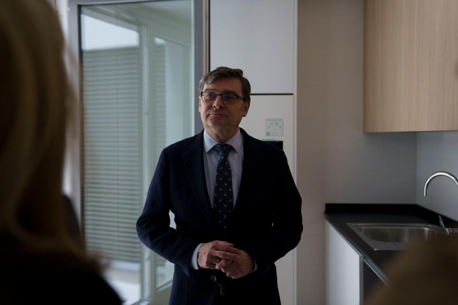 El delegado de Políticas de Vivienda y presidente de EMVS Madrid, Álvaro González, durante la visita del final de obras de la promoción Cañaveral 13, en el distrito de Vicálvaro