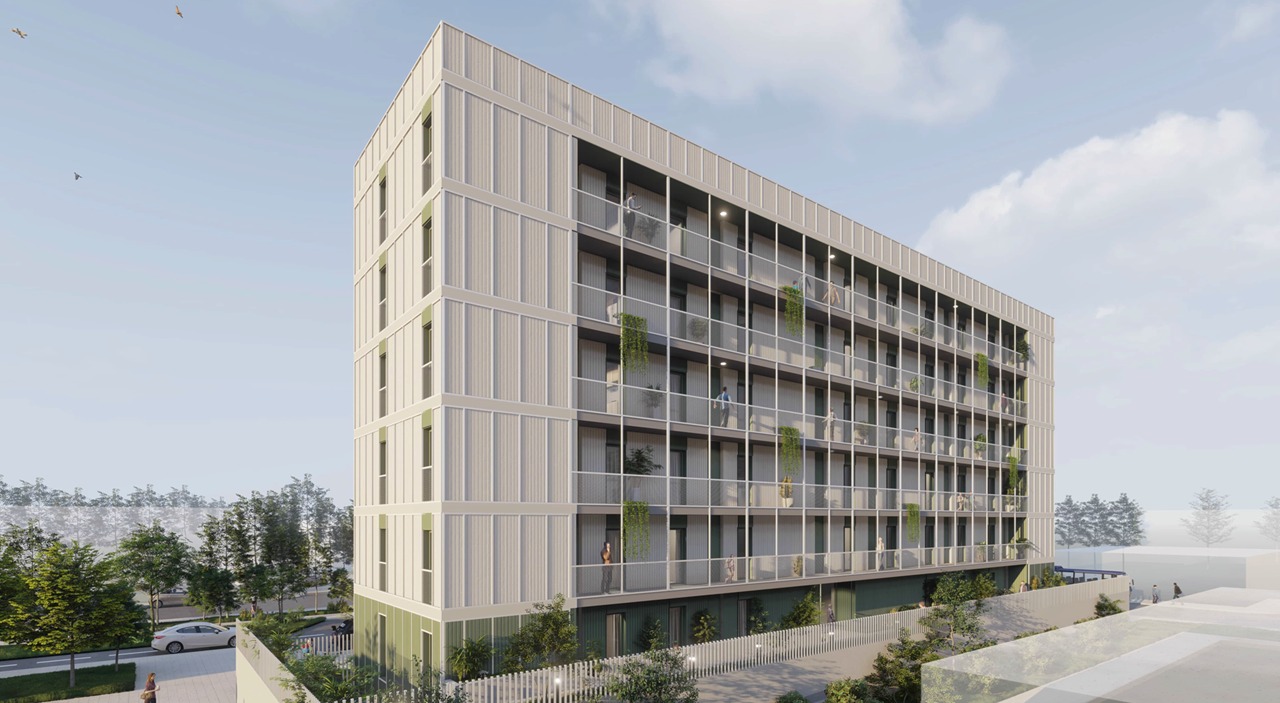 Este pionero proyecto de EMVS Madrid se caracteriza por su eficiencia energética y sostenibilidad, ya que el edificio cumplirá con los estándares Passivhaus y empleará soluciones como aerotermia, recuperación de calor, paneles fotovoltaicos para autoconsumo y un sistema de reutilización de aguas pluviales. Además, todos los módulos se fabricarán en seco, sin consumo de agua durante el proceso, y podrán ser desmontables, favoreciendo la economía circular.