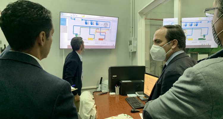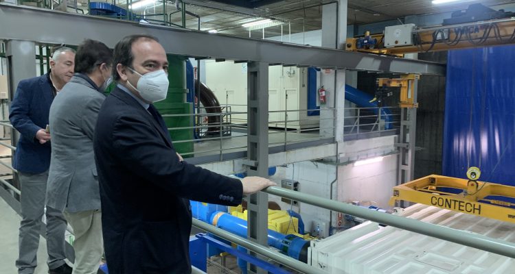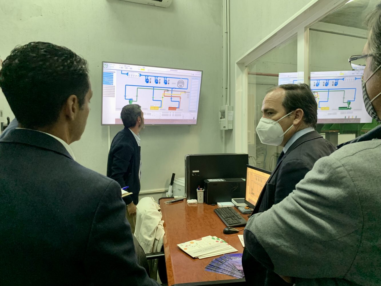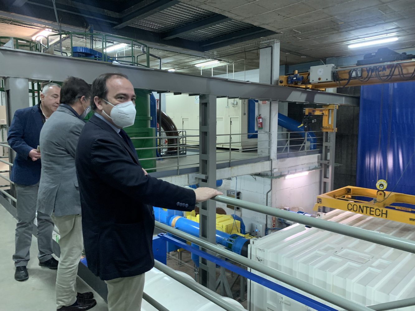 Borja Carabante comprueba el sistema de recogida neumática de residuos en el ecobarrio de Puente de Vallecas