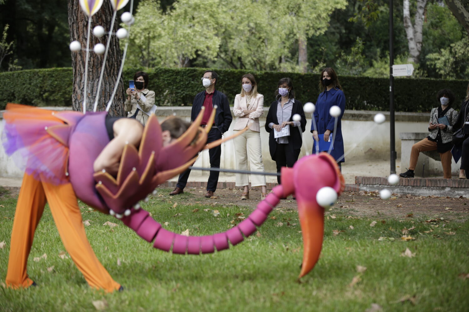 El encuentro ha contado con una actuación en directo de la reconocida compañía Aracaladanza, encargada de inaugurar el próximo fin de semana la programación con su espectáculo Quintaneando. Una obra que, en palabras de su director Enrique Cabrera, “busca ofrecer un momento de felicidad mágica y fugaz a través de la danza”. Cinco bailarines interpretarán cinco piezas del repertorio de la compañía, adaptadas y pensadas para Espacio Abierto y el parque que lo acoge, la Quinta de los Molinos. Han asistido también algunos de los artistas y ‘cómplices’ de Espacio Abierto, que han hecho posible que el centro se haya convertido en un lugar de referencia para los niños y adolescentes de la ciudad de Madrid y quienes serán los artífices de acompañar, guiar, enseñar y fomentar el aprendizaje y el disfrute del público de Espacio Abierto.