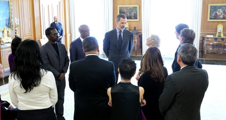 El Rey Felipe VI ha recibido esta mañana en el palacio de La Zarzuela a una representación del comité Organizador del II Foro Mundial sobre las Violencias Urbanas y Educación para la Convivencia y la Paz que se desarrollará en Matadero Madrid desde hoy y hasta el próximo jueves día 8 de noviembre.