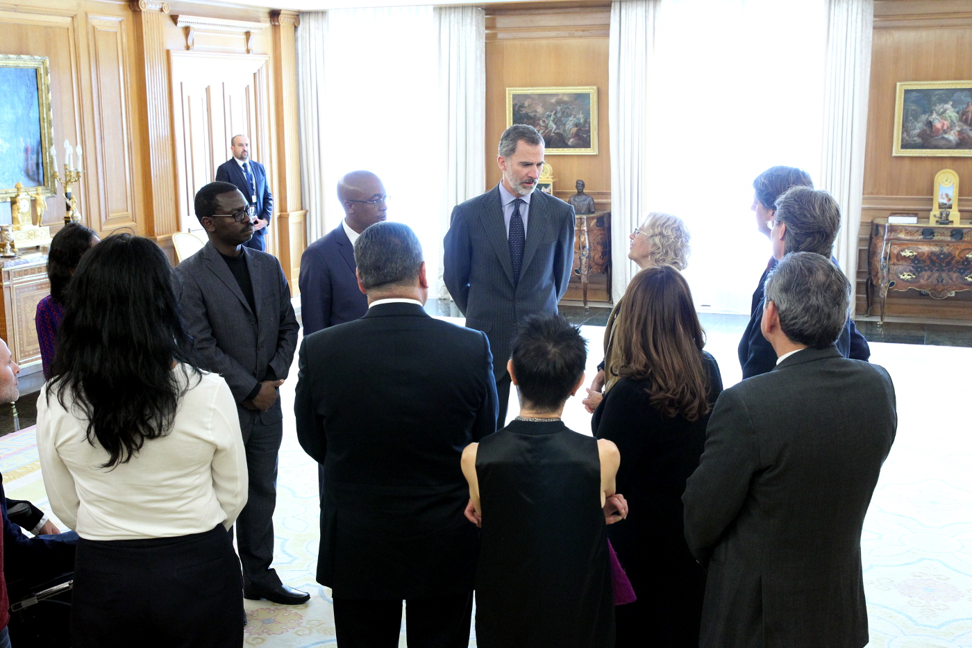 A dicha recepción, además de la alcaldesa, también han asistido: Marta Higueras, primera teniente de alcalde del Ayuntamiento de Madrid; Ouided Bouchamaoui, Premio Nobel de la Paz 2015; Mpho Parks Tau, presidente de Ciudades y Gobiernos Locales Unidos (CGLU); Carlos Martínez Mínguez, alcalde de Soria y miembro de la Federación Española de Municipios y Provincias, y Felipe Llamas, director de Gabinete de la Alcaldía de Madrid.