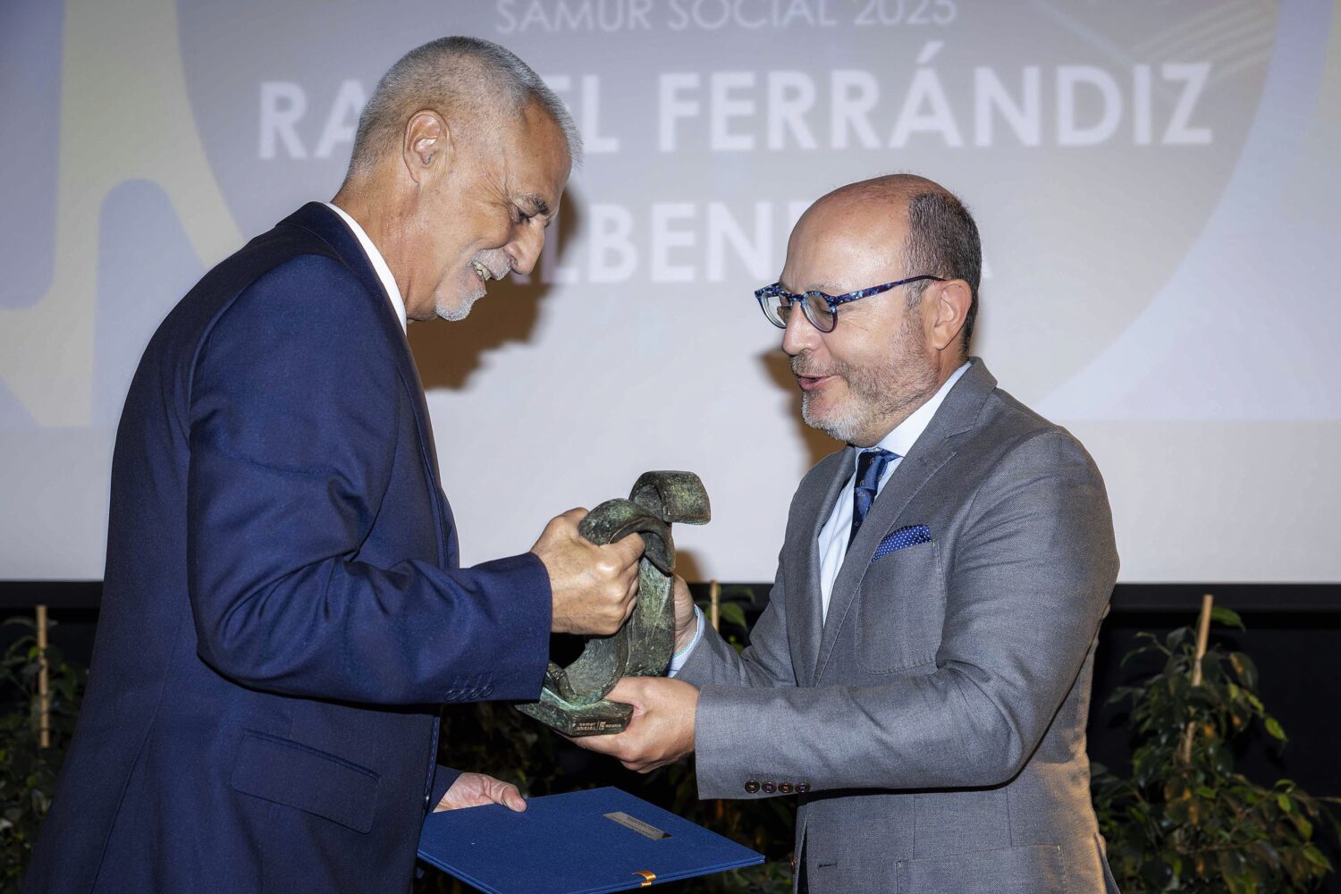 Los Reconocimientos SAMUR Social 2025 entregados en el acto reflejan el esfuerzo conjunto de los premiados por construir una sociedad más justa, inclusiva y solidaria, así como la importancia de la cooperación entre entidades para afrontar los retos sociales del presente y del futuro. El ‘Galardón honorífico’ lo ha recibido Rafael Ferrándiz, exjefe del Cuerpo de Bomberos del Ayuntamiento de Madrid, que realizó la última guardia de su carrera el pasado mes de marzo tras más de dos décadas al frente de este servicio de emergencias municipal y 41 años de trayectoria profesional. Este galardón “rinde homenaje a una vida dedicada a la protección de nuestra ciudad, con un liderazgo y compromiso que han sido pilares fundamentales para la seguridad y el bienestar de los madrileños”.