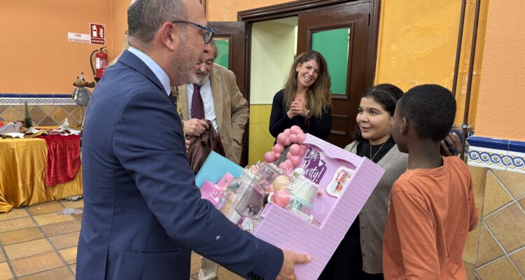 Durante el encuentro, los menores han recibido la visita de un paje de los Reyes Magos que ha repartido regalos para todos. Además, el delegado ha deseado suerte a los niños que el 22 de diciembre participarán en el Sorteo Extraordinario de la Lotería de Navidad.