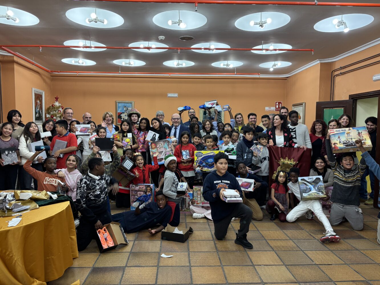 Durante el encuentro, los menores han recibido la visita de un paje de los Reyes Magos que ha repartido regalos para todos. Además, el delegado ha deseado suerte a los niños que el 22 de diciembre participarán en el Sorteo Extraordinario de la Lotería de Navidad.