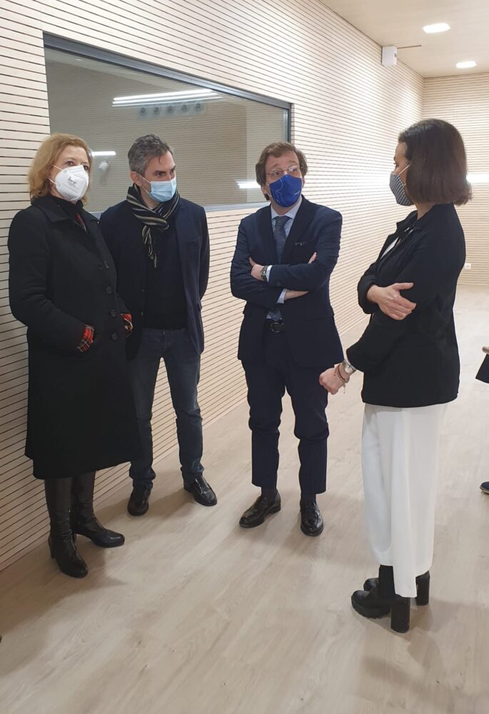 El alcalde de Madrid, José Luis Martínez-Almeida, ha visitado esta semana estas nuevas instalaciones, que cuentan además con una gran superficie ajardinada con zona para posibles actuaciones al aire libre y un patio inglés, junto a los delegados de Obras y Equipamientos, Paloma García Romero, y de Familias, Igualdad y Bienestar Social, Pepe Aniorte, y la concejala del distrito, Almudena Maíllo. /