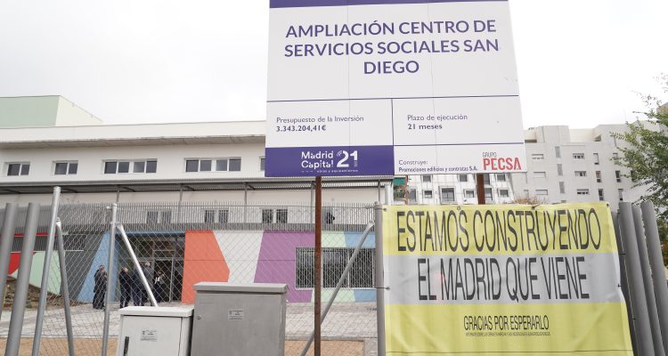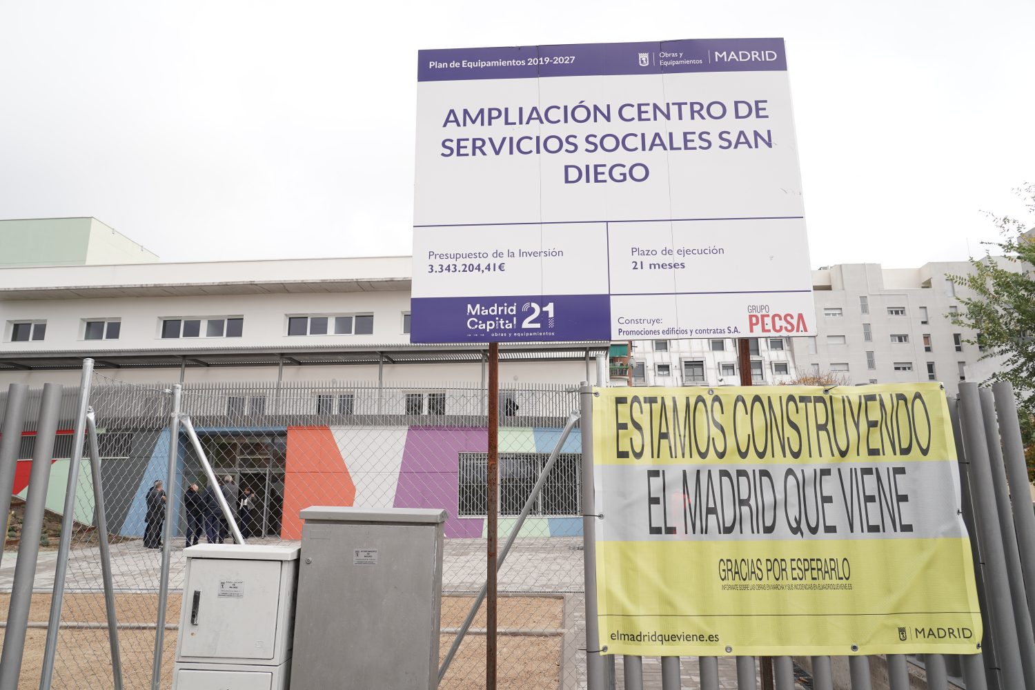 El alcalde de Madrid, José Luis Martínez-Almeida, acompañado de la delegada de Obras y Equipamientos, Paloma García Romero, y el concejal de Puente de Vallecas, Borja Fanjul, ha visitado hoy el Centro de Servicios Sociales San Diego, cuyos trabajos de ampliación acaban de finalizar.