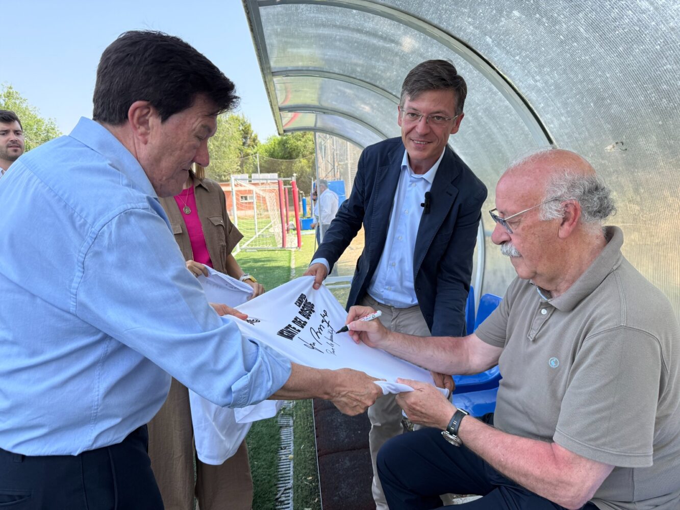 La concejala delegada de Deporte, Sonia Cea, y el concejal de Fuencarral-El Pardo, José Antonio Martínez Páramo, junto al exseleccionador nacional de fútbol Vicente del Bosque, han visitado a los alumnos del campus que se celebra en el centro deportivo municipal que lleva el nombre del entrenador. El concejal del distrito ha recalcado que este campus de fútbol “es una muestra más del compromiso que tenemos con el deporte de base en Fuencarral-El Pardo, fomentando la inclusión de nuestros niños y jóvenes, así como promoviendo la ayuda a las familias en este periodo estival para conciliar la vida familiar y laboral.”