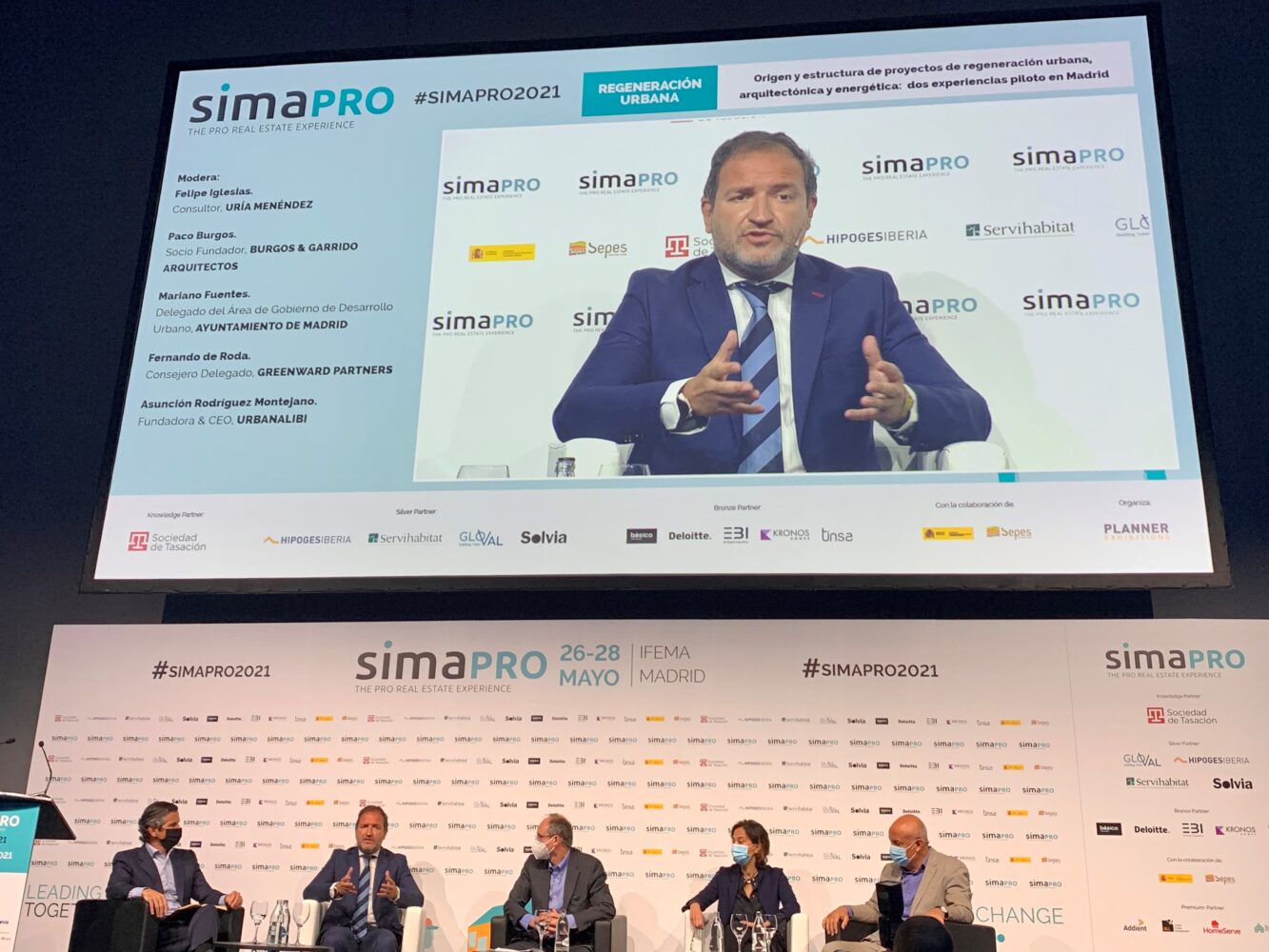 El delegado de Desarrollo Urbano, Mariano Fuentes, ha participado hoy en el coloquio ‘Origen y estructura de proyectos de regeneración urbana, arquitectónica y energética: dos experiencias piloto en Madrid’, desarrollado en el marco de la feria SIMAPRO que se está celebrando en IFEMA. En el mismo, Fuentes ha explicado la estrategia establecida por el Ayuntamiento en materia de regeneración que, según ha dicho, “está basada en tres conceptos fundamentales, el quién, el qué y el por qué” y donde la apuesta del Consistorio “es global para la realización de las labores de regeneración de la ciudad”.