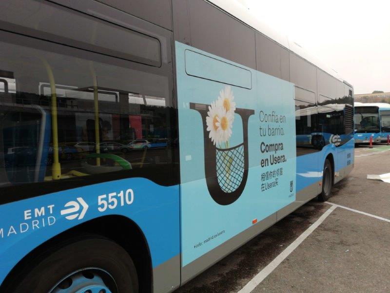 Las iniciativas también han incluido el diseño de una imagen para el comercio de Usera, plasmada en 8.000 bolsas de la compra y en las banderolas y carteles de gran formato instalados en los ejes comerciales principales para fomentar la compra de cercanía y un consumo responsable.