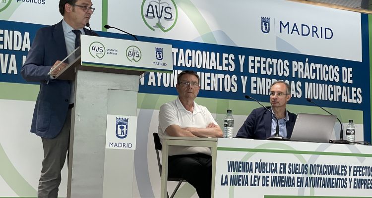 El delegado de Políticas de Vivienda y presidente de la Empresa Municipal de la Vivienda y Suelo (EMVS), Álvaro González, ha clausurado hoy la jornada sobre ‘Vivienda pública en suelos dotacionales y efectos prácticos de la nueva Ley de Vivienda en ayuntamientos y empresas municipales’, organizada por la Asociación de Gestores Públicos de Vivienda y Suelo (AVS), de la que forma parte la empresa pública madrileña.