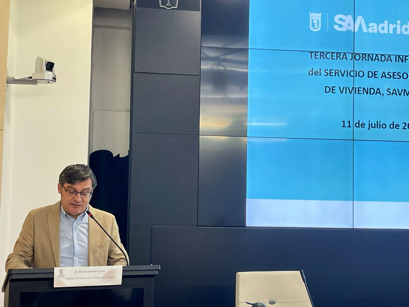 El Ayuntamiento de Madrid ha celebrado hoy la III Jornada Informativa del Servicio de Asesoramiento de Vivienda (SAV Madrid) en el Ilustre Colegio de la Abogacía de Madrid (ICAM). El encuentro ha sido inaugurado por el delegado de Políticas de Vivienda, Álvaro González, quien ha agradecido el apoyo institucional y la colaboración activa de entidades como el ICAM, la Empresa Municipal de Vivienda y Suelo (EMVS Madrid) y la Asociación Promotores Inmobiliarios de Madrid (ASPRIMA).