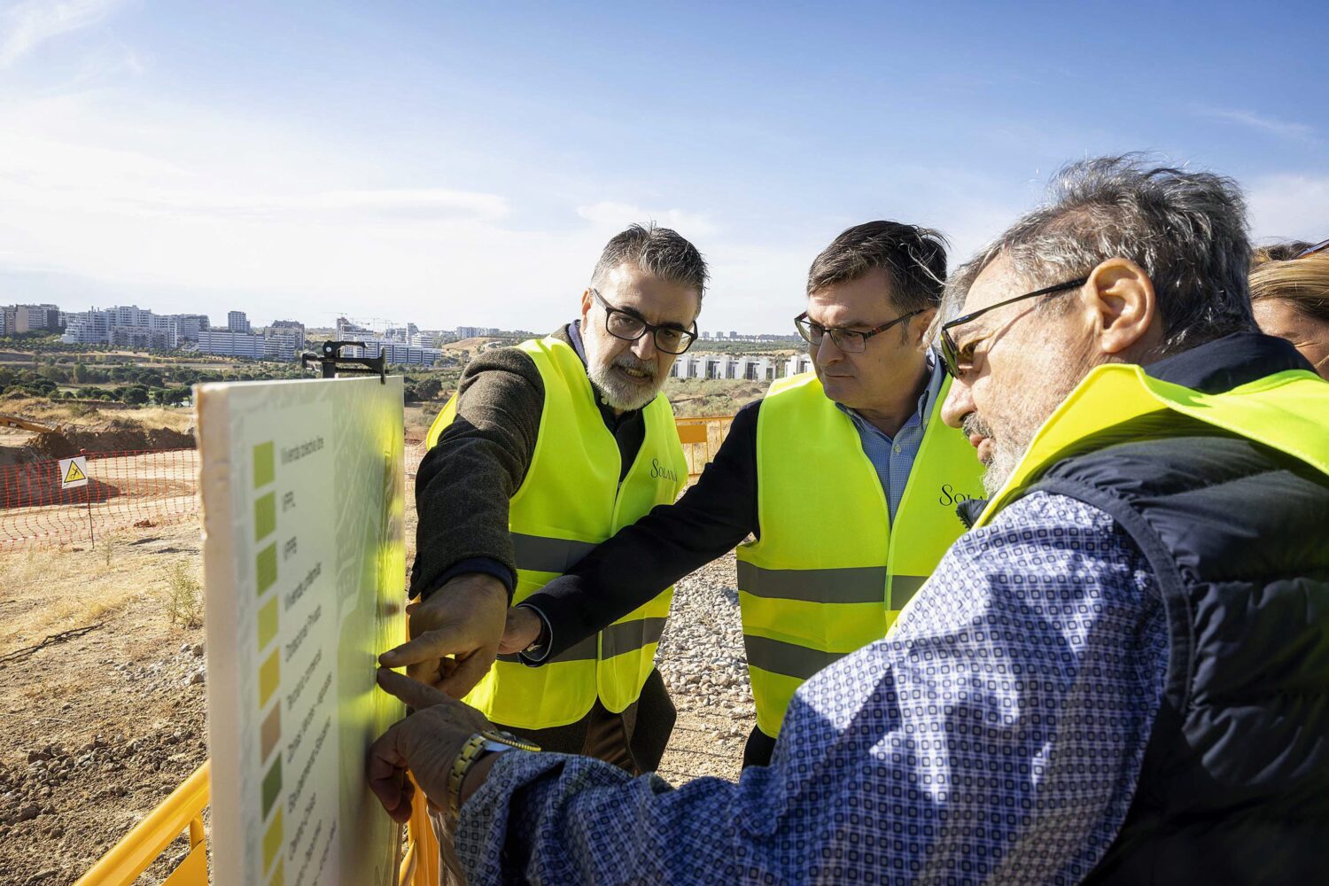 El delegado de Políticas de Vivienda y presidente de la Empresa Municipal de la Vivienda y Suelo de Madrid (EMVS Madrid), Álvaro González, ha visitado el ámbito de La Solana de Valdebebas, un desarrollo de un millón de metros cuadrados situado en la zona norte de Madrid, en el distrito de Hortaleza, que contará con casi 1.400 viviendas. Durante la visita junto a representantes de la Junta de Compensación, han podido comprobar el avance de las obras de urbanización, que se han visto afectadas por las lluvias de la pasada primavera. Desde el verano se han reforzado los equipos y actualmente se trabaja en movimientos de tierra, saneamiento y conexión exterior de energía eléctrica.