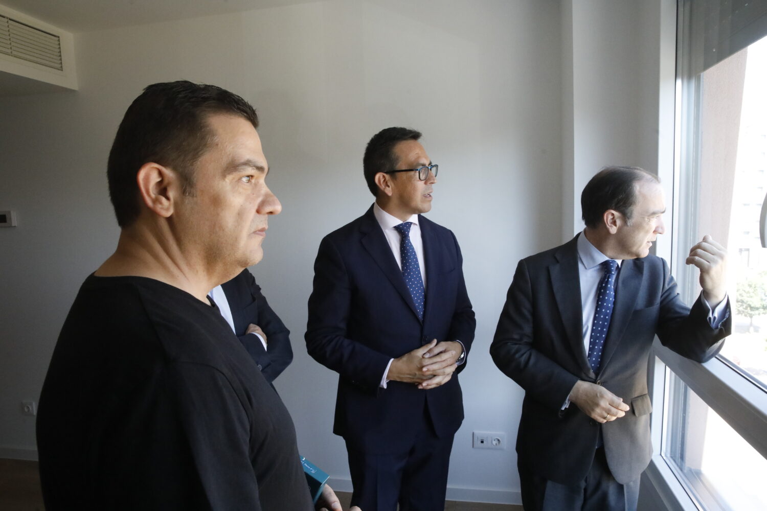 Alberto ha sido el primer madrileño en hacerse con uno de estos pisos. Esta mañana, el delegado de Urbanismo, Medio Ambiente y Movilidad, Borja Carabante, y el delegado de Políticas de Vivienda, Álvaro González, junto al concejal del distrito, Orlando Chacón, han entregado a este vecino las llaves de su casa, de dos dormitorios.