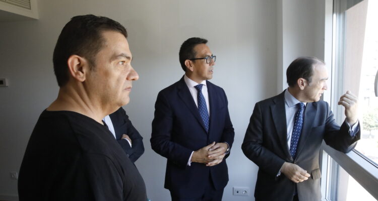 Carabante, González y Chacón en momento de la visita y entrega de llaves, Parque Central de Ingenieros en el distrito de Villaverde