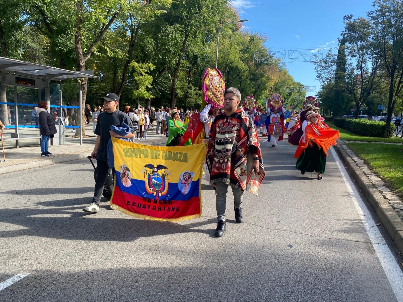 El desfile se ha desarrollado desde el Centro Cultural La Vaguada y a lo largo de la avenida de Monforte de Lemos, hasta llegar al templete del parque de la Vaguada, donde los grupos Sangre Ecuatoriana (Ecuador), Compañía de danzas Perú Místico (Perú), Grupo Sentimiento Nacional (Venezuela) y Arte Colombiano (Colombia), integrados por personas residentes en Madrid, han interpretado cánticos y bailes de géneros musicales de sus distintos países, ataviados son atuendos regionales. /