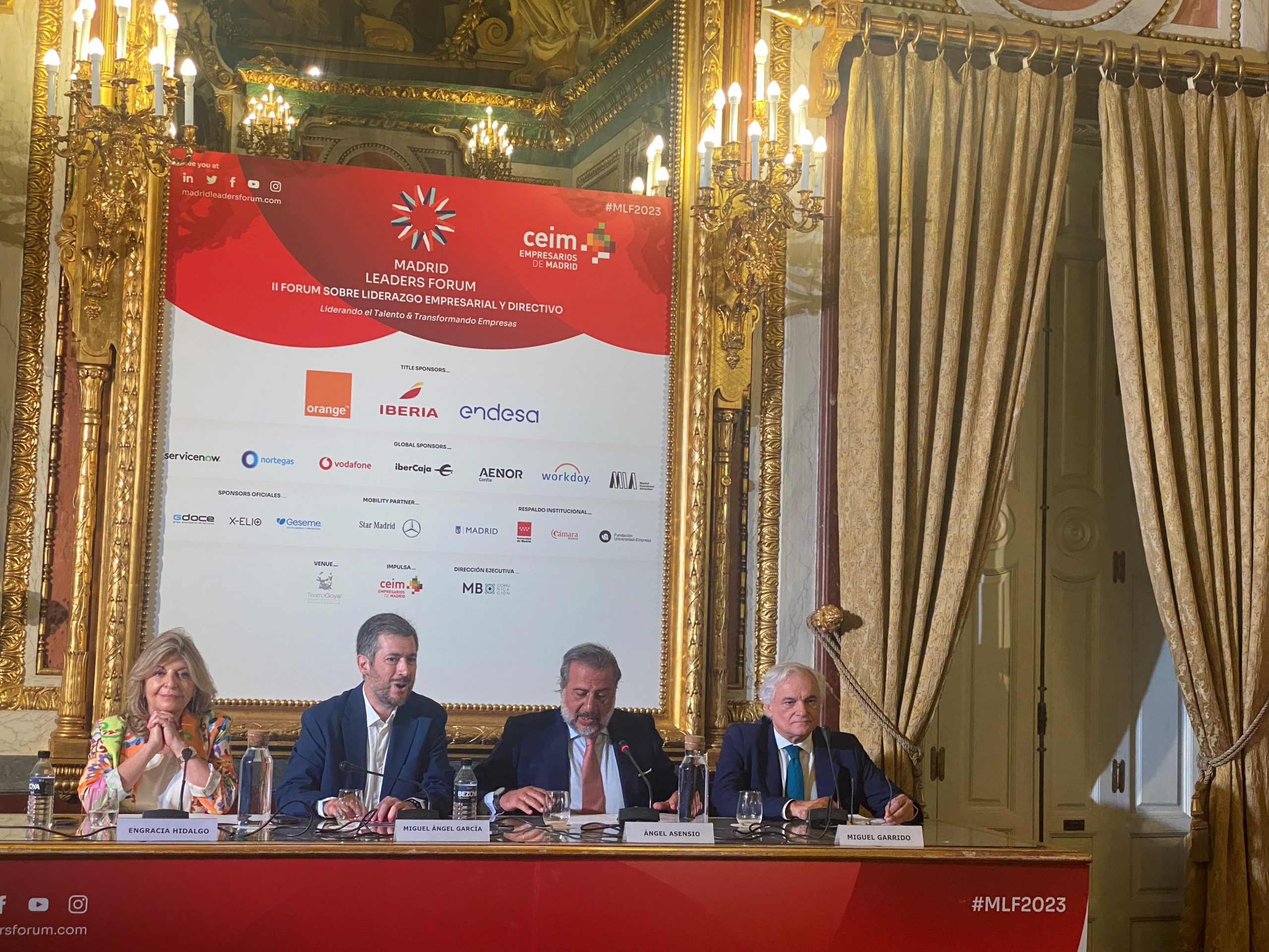 La delegada ha estado acompañada durante la presentación de este encuentro sobre liderazgo empresarial y directivo por el presidente de la Confederación Empresarial de Madrid-CEOE (CEIM), Miguel Garrido, el presidente de la Cámara de Comercio de Madrid, Ángel Asensio, y por el consejero de Presidencia, Justicia y Administración Local, Miguel Ángel García.