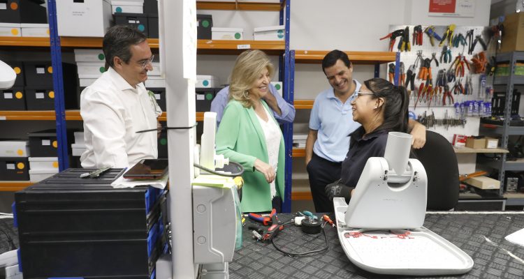 La delegada de Economía, Innovación y Hacienda del Ayuntamiento de Madrid, Engracia Hidalgo, ha visitado esta mañana la Empresa Hispánica de Led, fabricante de luminarias y alumbrado público con tecnología LED que cuenta en su plantilla con empleados con dificultades de inserción laboral. Una empresa situada en la Factoría Industrial de Vicálvaro, el primer espacio de apoyo al desarrollo y consolidación de empresas y proyectos industriales y servindustriales de la ciudad de Madrid.