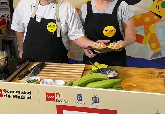Durante la jornada de hoy, los asistentes al mercado han disfrutado de una demostración de cocina colombiana realizada en el puesto Majo´s Food y han degustado algunos de los platos típicos del país sudamericano, siendo así partícipes de los actos de conmemoración de la Hispanidad 2023 organizados por el Consistorio y la Comunidad de Madrid, así como del creciente protagonismo de los mercados municipales en la agenda de la ciudad.