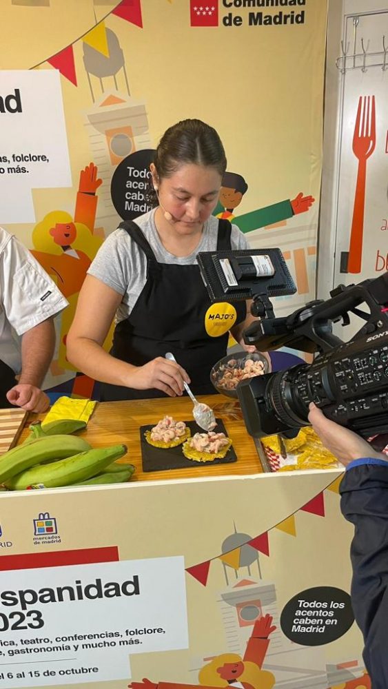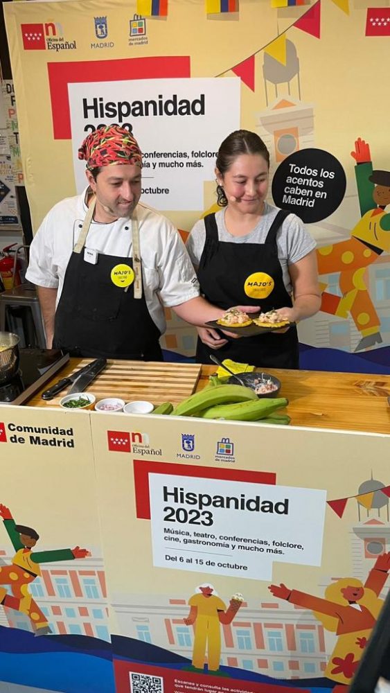 Durante la jornada de hoy, los asistentes al mercado han disfrutado de una demostración de cocina colombiana realizada en el puesto Majo´s Food y han degustado algunos de los platos típicos del país sudamericano, siendo así partícipes de los actos de conmemoración de la Hispanidad 2023 organizados por el Consistorio y la Comunidad de Madrid, así como del creciente protagonismo de los mercados municipales en la agenda de la ciudad.