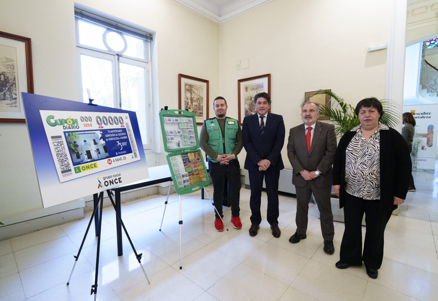 El concejal de Hortaleza, David Pérez, ha participado hoy en la presentación del cupón conmemorativo que la Organización Nacional de Ciegos Españoles (ONCE) ha diseñado con motivo del 75º aniversario de la adhesión del distrito a la ciudad de Madrid. Pérez ha agradecido a la entidad “que se sume a la celebración de este hito tan importante”, recordando la buena relación que existe entre el Ayuntamiento de Madrid y la ONCE “a través de la puesta en marcha de distintos programas de accesibilidad o inserción laboral”.