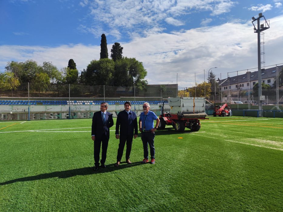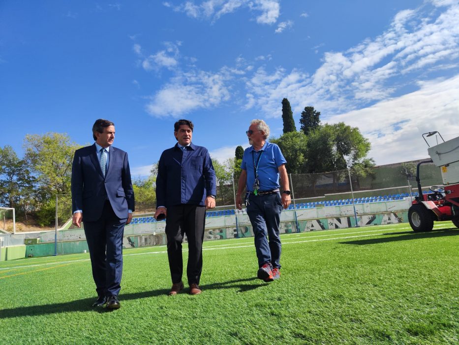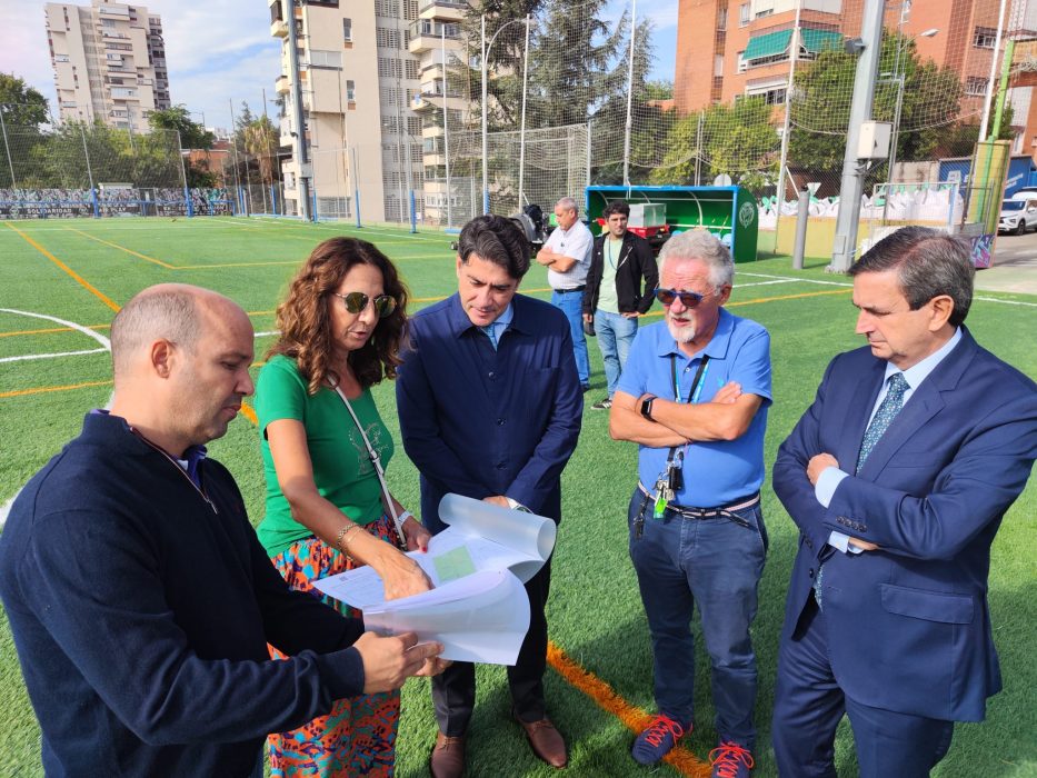 El concejal de Hortaleza, David Pérez, ha visitado hoy las obras de mejora de la Instalación Deportiva Básica Esperanza I, donde se está sustituyendo el césped artificial del campo de fútbol 11, “dejándolo en las mejores condiciones para el comienzo de la temporada”.