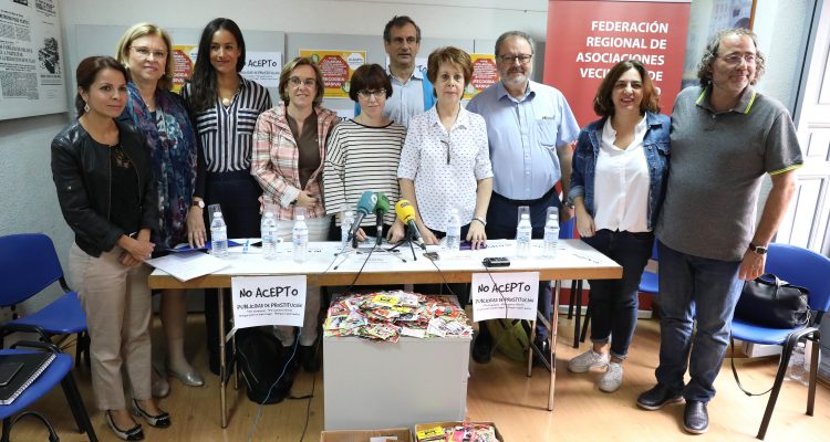 El delegado de Salud, Seguridad y Emergencias, José Javier Barbero, y la delegada de Políticas de Género y Diversidad, Celia Mayer, han participado este mediodía en la presentación del programa “No Acepto”, contra la publicidad de prostitución en los barrios, elaborado por diferentes colectivos y asociaciones de vecinos y presentada hoy en la sede de la Federación Regional de Asociaciones de Vecinos de Madrid (FRAVM).