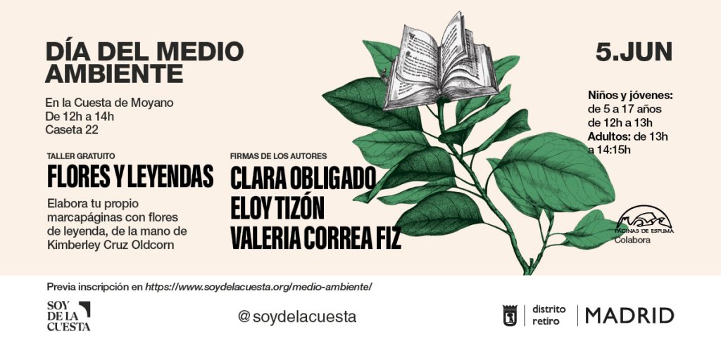 La celebración comenzará a las 12:00 h en la caseta 22 de la Cuesta de Moyano con la realización del taller gratuito ‘Flores y leyendas’ a cargo de la diseñadora floral y paisajista Kimberley Cruz Oldcorn y la participación de los autores Clara Obligado, Eloy Tizón y Valeria Correa Fiz que firmarán ejemplares de sus libros Todo lo que crece: Naturaleza y escritura, Velocidad de los jardines y Hubo un jardín.