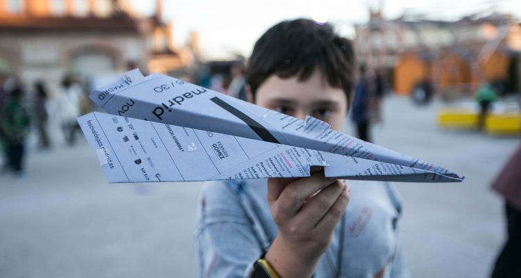 Aviones de papel, juegos de cartas, plastilinas y pelotas han sido algunos de los elementos utilizados por quienes que se han acercado a Matadero en el día de hoy.