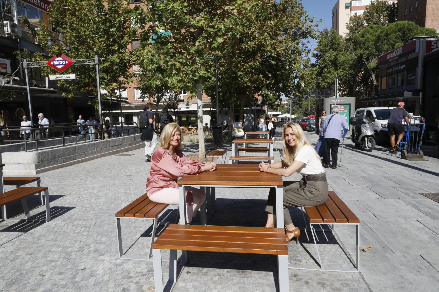 Imágenes de la visita de la delegada de Obras y Equipamientos y la concejala de Ciudad Lineal a la remodelada plaza de Quintana y Alcalá