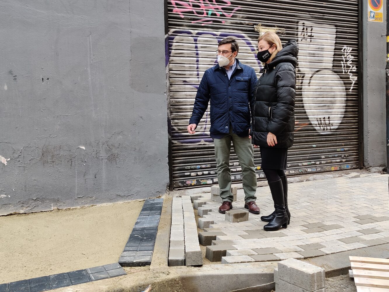 La delegada de Obras y Equipamientos, Paloma García Romero, acompañada del concejal de Carabanchel, Álvaro González, ha visitado esta mañana los trabajos de mejora que el Ayuntamiento está desarrollando en la calle Fuenlabrada. Estas actuaciones se enmarcan dentro del Plan de Aceras y Accesibilidad que el Consistorio ha puesto en marcha en los 21 distritos de la capital con un importe de 55 millones de euros.