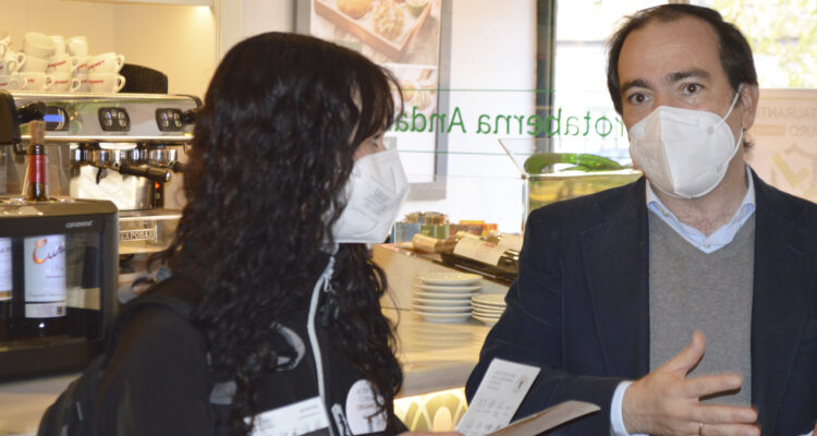 Declaraciones del delegado de Medio Ambiente y Movilidad, Borja Carabante, esta mañana, en una de sus visitas informativas a comercios del distrito de Arganzuela y acompañando a uno de los equipos educativos de la campaña ‘Acierta con la orgánica