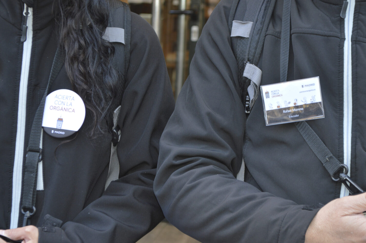 El delegado de Medio Ambiente y Movilidad, Borja Carabante, ha acompañado esta mañana a uno de los equipos educativos de la campaña ‘Acierta con la orgánica’, en una de sus visitas informativas a comercios del distrito de Arganzuela después de que el Ayuntamiento implantara el pasado mes de septiembre al 100 % el cubo marrón en toda la ciudad y un mes después arrancara una nueva campaña de concienciación. El objetivo: promover el uso del nuevo contenedor de tapa marrón en la ciudad de Madrid para los residuos de origen orgánico.