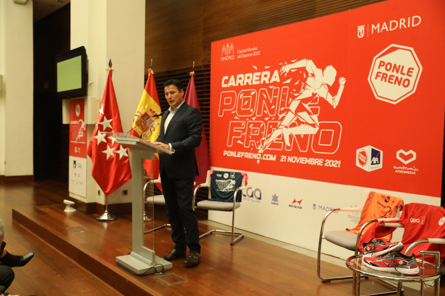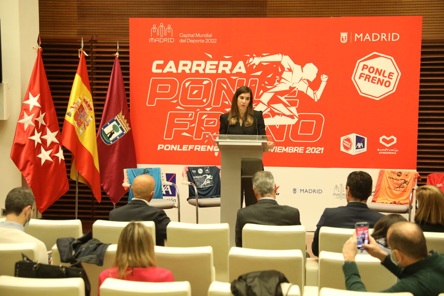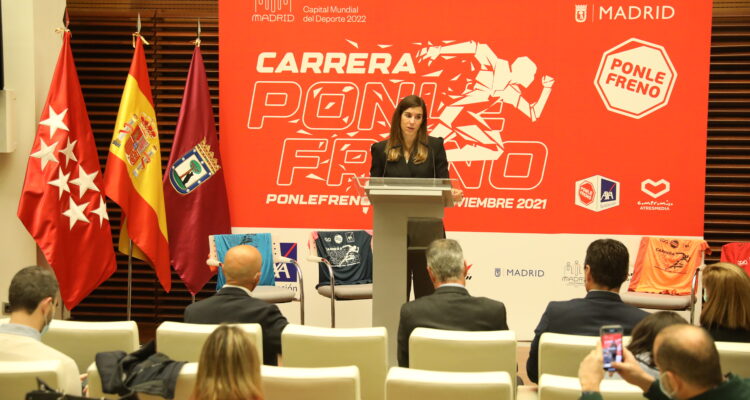 Cerca de 20.000 corredores tomarán las calles de Madrid el próximo domingo, 21 de noviembre, Día Mundial en Recuerdo de las Víctimas de Accidentes de Tráfico, para participar en la carrera ‘Ponle Freno’. La concejala delegada de Deporte, Sofía Miranda, ha participado esta mañana en la presentación de esta carrera solidaria por la seguridad vial junto al excampeón del mundo de maratón y embajador del Circuito de Carreras Ponle Freno, Martín Fíz.