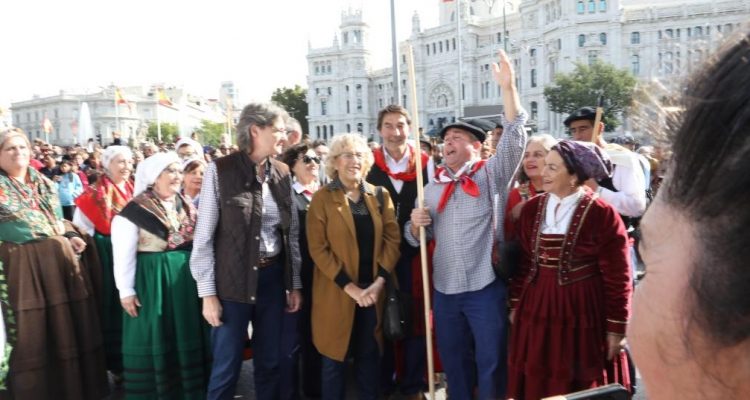 Este domingo se ha vuelto a celebrar la Fiesta de la Trashumancia con un recorrido desde la Casa de Campo hasta Cibeles. La alcaldesa ha estado acompañada de la primera Teniente de Alcalde, Marta Higueras; Fernando Miranda Sotillo, secretario general del ministerio de Agricultura, Pesca y Alimentación; José Luis Sanz Vicente, director general de Agricultura, Ganadería y Alimentación de la Comunidad de Madrid: Francisco Martínez Arroyo, consejero de Agricultura, Medio Ambiente y Desarrollo Rural de Castilla-La Mancha y la Mayorala Mariti González.