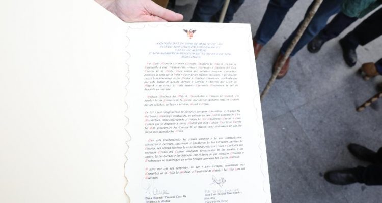 Los pastores de los rebaños de ovejas merinas han entregado a la alcaldesa los “50 maravedís al millar” estipulados por la Concordia de 2 de marzo de 1418 entre los Hombres Buenos de la Mesta y los Procuradores del Concejo de la Villa en concepto del derecho de paso de los rebaños por la capital.
