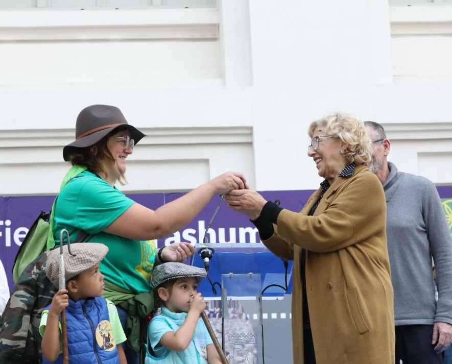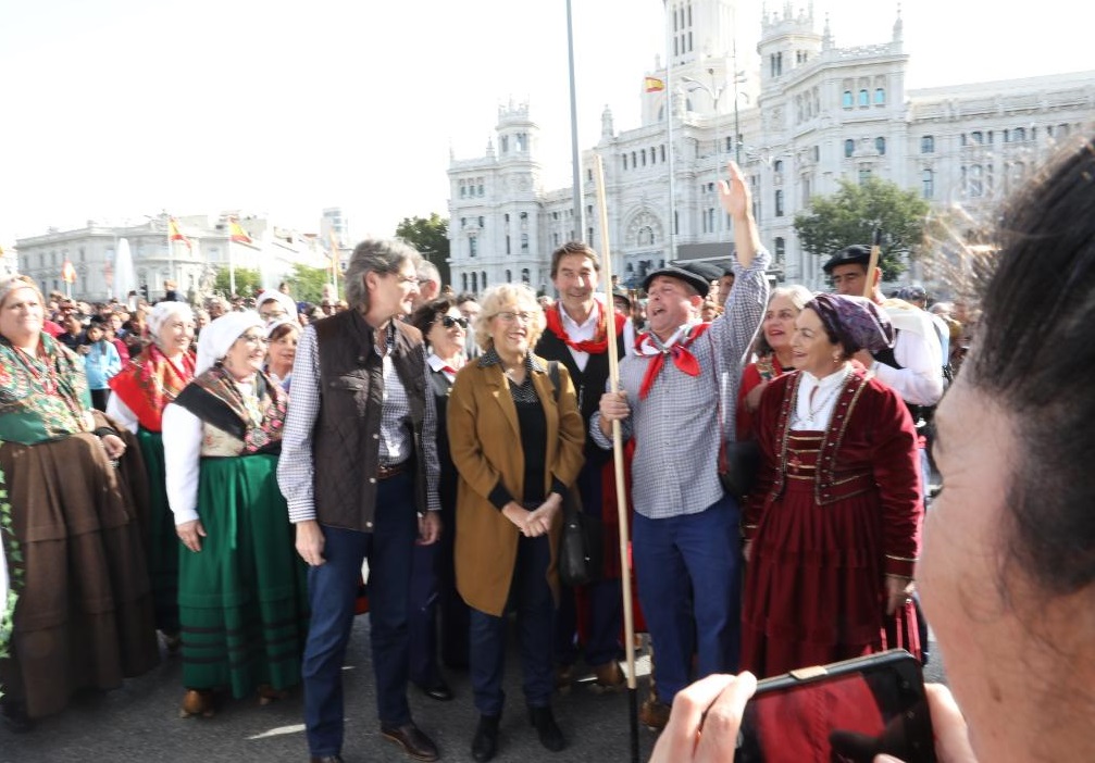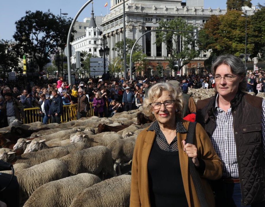Este domingo se ha vuelto a celebrar la Fiesta de la Trashumancia con un recorrido desde la Casa de Campo hasta Cibeles. La alcaldesa ha estado acompañada de la primera Teniente de Alcalde, Marta Higueras; Fernando Miranda Sotillo, secretario general del ministerio de Agricultura, Pesca y Alimentación; José Luis Sanz Vicente, director general de Agricultura, Ganadería y Alimentación de la Comunidad de Madrid: Francisco Martínez Arroyo, consejero de Agricultura, Medio Ambiente y Desarrollo Rural de Castilla-La Mancha y la Mayorala Mariti González.