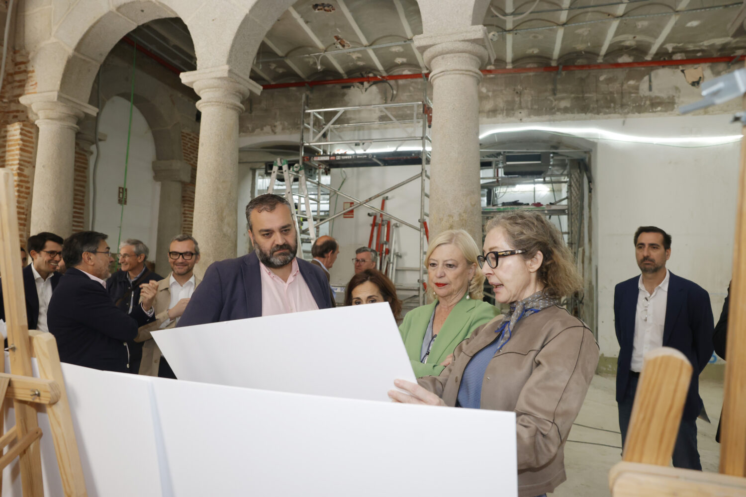 La delegada de Obras y Equipamientos, Paloma García Romero, acompañada del concejal de Centro, Carlos Segura, ha visitado esta mañana la Casa de Cisneros, donde se están ejecutando trabajos para la creación de un nuevo Salón de Comisiones del Pleno del Ayuntamiento de Madrid. Los trabajos, que suponen una inversión de 1,3 millones de euros, concluirán a finales de año, de manera que las nuevas instalaciones podrán ponerse en funcionamiento a lo largo de 2027.