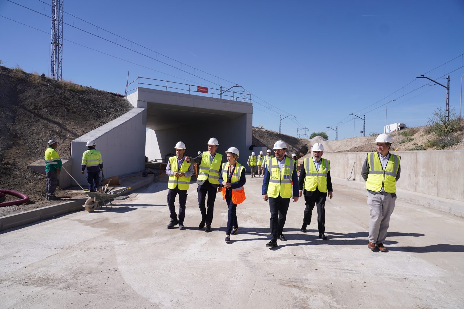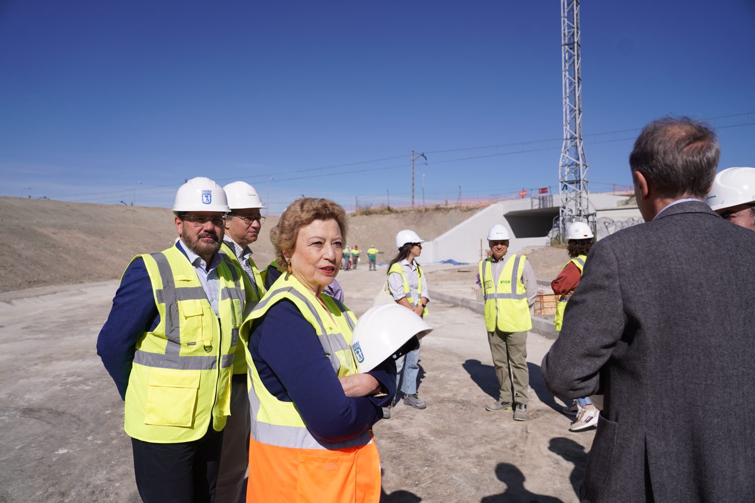 La delegada de Obras y Equipamientos, Paloma García Romero, acompañada del concejal de Villa de Vallecas, Carlos González, ha visitado esta mañana los trabajos de construcción del nuevo paso inferior de las vías del ferrocarril en el camino del Pozo del Tío Raimundo. El proyecto supone una inversión municipal de 2,4 millones de euros y está previsto que las obras, que han entrado en su recta final, concluyan este otoño.