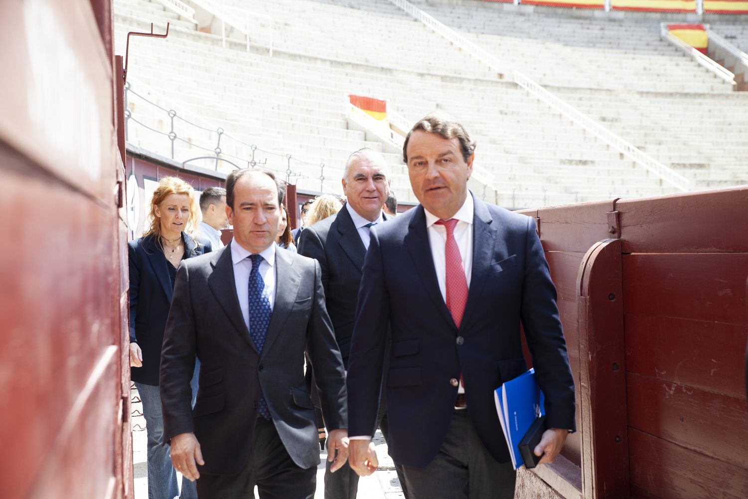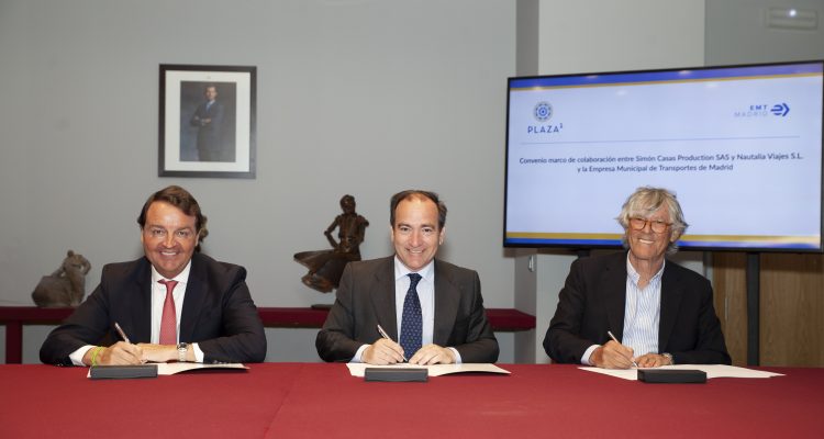 El presidente de la Empresa Municipal de Transportes de Madrid, Borja Carabante, acompañado por su director gerente, Alfonso Sánchez, ha firmado hoy un acuerdo con el presidente y el director general de la UTE Plaza 1, actual gestora de la Plaza de Toros de Las Ventas, Rafael García Garrido y Simón Casas, por el que la empresa municipal apoyará las actividades que organice o fomente esta unión de empresas a fin de promocionar la ciudad de Madrid como polo de atracción cultural para ciudadanos y turistas.