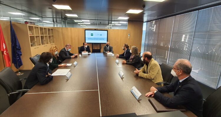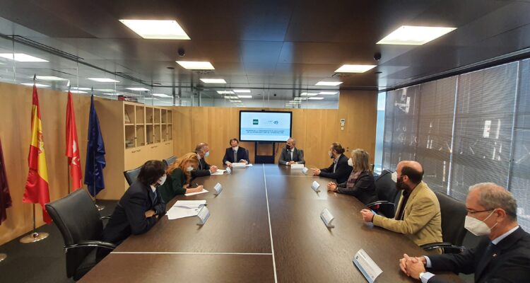 El delegado de Medio Ambiente y Movilidad, Borja Carabante, y el gerente de la Empresa Municipal de Transportes (EMT), Alfonso Sánchez, se han reunido esta mañana en la sede central de la EMT con un equipo científico y docente de la Universidad Nacional de Educación a Distancia (UNED) para celebrar la Comisión Mixta de Seguimiento de la Cátedra EMT-UNED de Calidad del Aire. Encabezando la representación de esta universidad han asistido su rector, Ricardo Mairal, y su vicerrectora, Rosa Mª Martín, acompañados también por el director de la cátedra, el profesor José Luis Aznarte. Con la formación de un grupo de trabajo específico, se pretende analizar la huella de carbono en el seno de la EMT y poner de relieve los avances conseguidos en la reducción de gases de efecto invernadero, en consonancia con la actual Estrategia de Sostenibilidad 360 del Ayuntamiento de Madrid.
