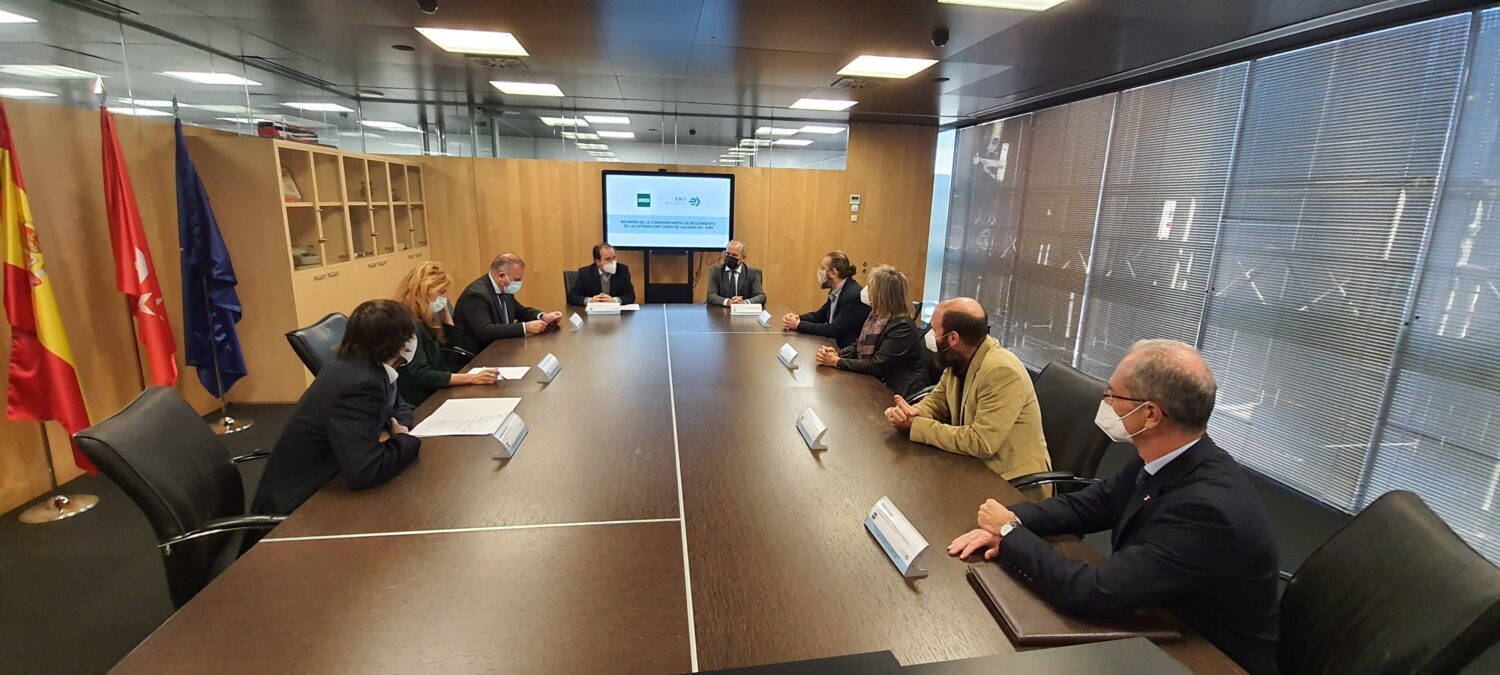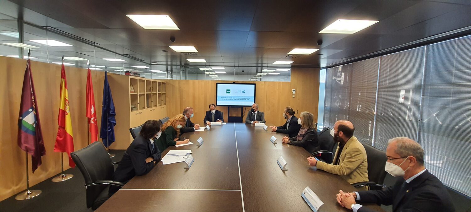 El delegado de Medio Ambiente y Movilidad, Borja Carabante, y el gerente de la Empresa Municipal de Transportes (EMT), Alfonso Sánchez, se han reunido esta mañana en la sede central de la EMT con un equipo científico y docente de la Universidad Nacional de Educación a Distancia (UNED) para celebrar la Comisión Mixta de Seguimiento de la Cátedra EMT-UNED de Calidad del Aire. Encabezando la representación de esta universidad han asistido su rector, Ricardo Mairal, y su vicerrectora, Rosa Mª Martín, acompañados también por el director de la cátedra, el profesor José Luis Aznarte. Con la formación de un grupo de trabajo específico, se pretende analizar la huella de carbono en el seno de la EMT y poner de relieve los avances conseguidos en la reducción de gases de efecto invernadero, en consonancia con la actual Estrategia de Sostenibilidad 360 del Ayuntamiento de Madrid.