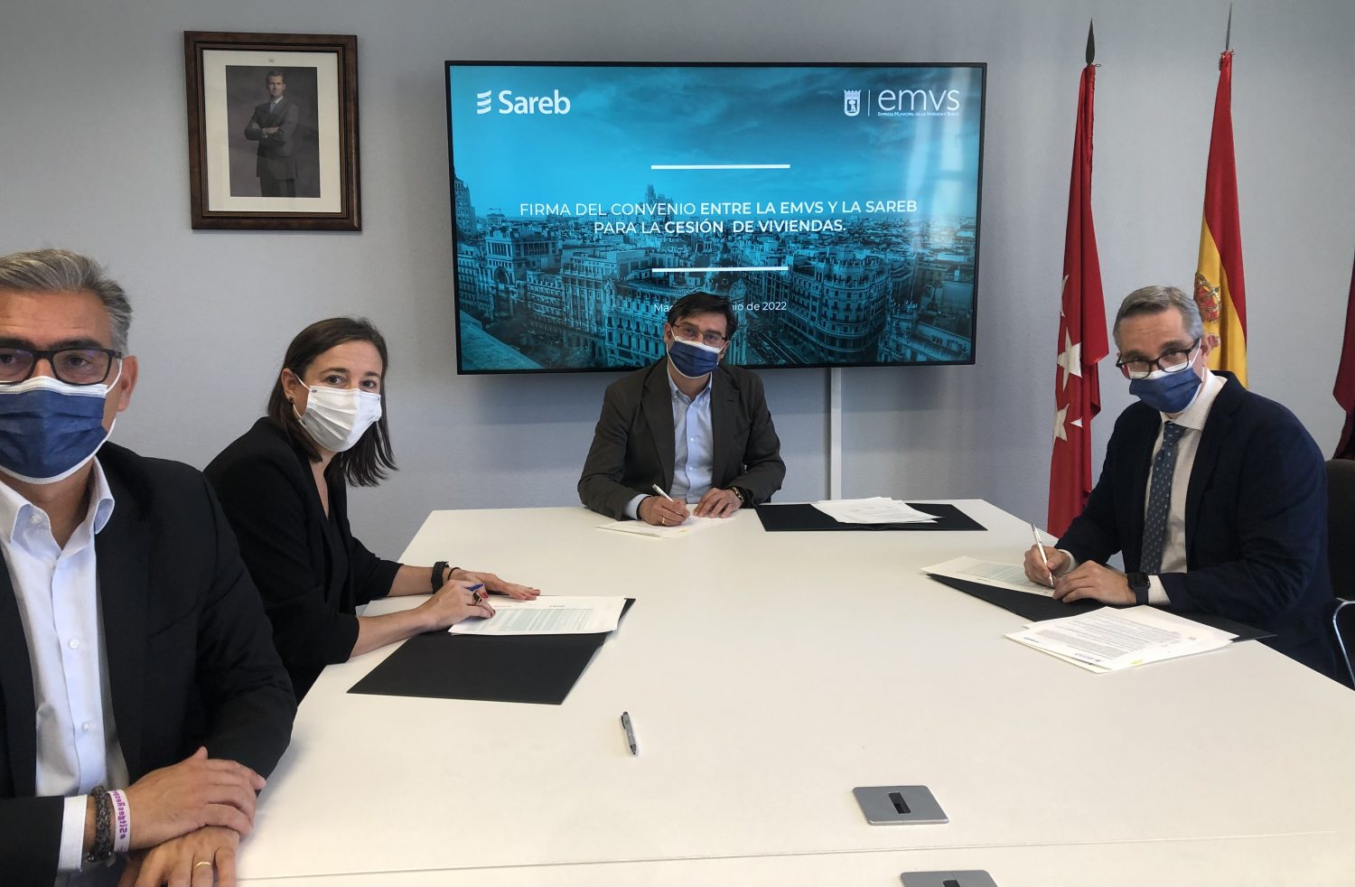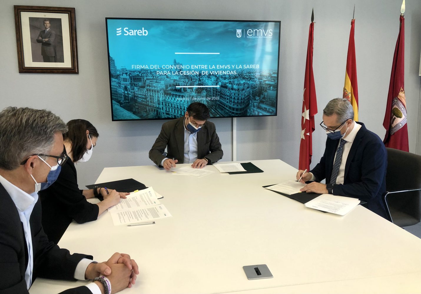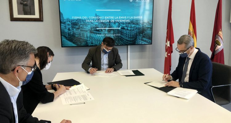 Firma del convenio para la adquisición de 42 viviendas para alquileres asequibles entre la EMVS y la Sareb