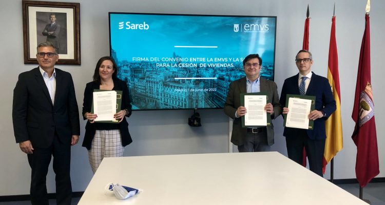 La Empresa Municipal de la Vivienda y Suelo de Madrid (EMVS) ha suscrito hoy un convenio con la Sociedad de Gestión de Activos Procedentes de la Reestructuración Bancaria (Sareb) para la cesión temporal de un edificio de 42 viviendas destinadas a alquileres asequibles. Finalizado el tiempo del convenio o durante el transcurso del mismo, el Consistorio tendrá la posibilidad de adquirir las viviendas.