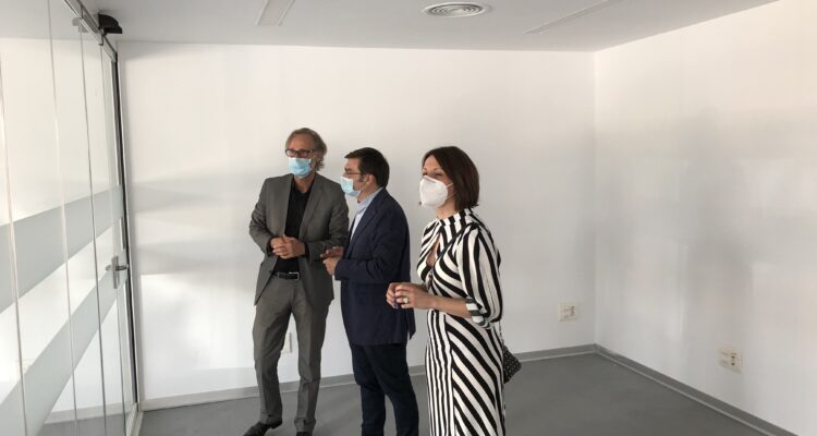 Álvaro González, concejal delegado de Vivienda y presidente de la EMVS; Diego Lozano, consejero delegado de la EMVS; y Concha Chapa, concejal del distrito de Villaverde, han visitado este lunes los locales para comprobar de primera mano las reformas acometidas por los técnicos de la empresa pública, unos trabajos que pondrán a disposición de los vecinos 712 metros cuadrados de usos comunitarios.
