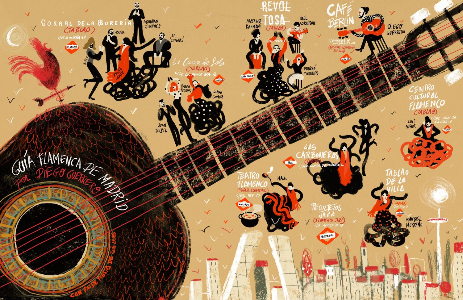 En el número 67 del magazín, Ángel Rojas, bailaor, coreógrafo y director artístico del festival asegura: “El flamenco solo sabe de verdades y solo bebe de soñadores, bohemios y sobre todo de valientes aventureros, también sabe de canallas, de Movida madrileña y de roqueros flamencos y punkis…Pero, sobre todo, el flamenco ama a Madrid y su libertad para vivir para y por el flamenco”. Irene Blasco ilustra sus palabras mientras que Raúl Arias da vida a la Guía flamenca de Madrid de Diego Guerrero.