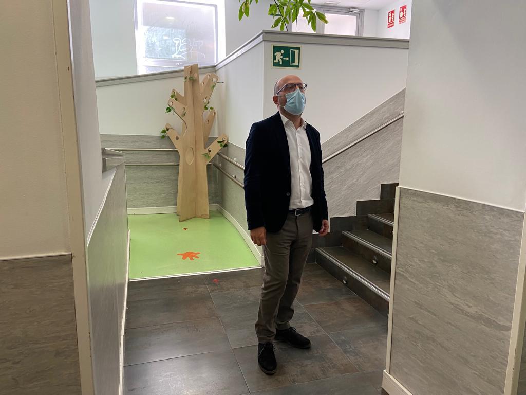 La Escuela Infantil Osa Menor ha arrancado el curso con instalaciones renovadas durante el verano. Aprovechando las vacaciones escolares estivales, la Junta Municipal de Centro ha abordado las obras necesarias para mejorar la vida escolar de sus pequeños alumnos. Hoy, José Fernández, concejal del distrito, ha visitado esta escuela que comparte edificio, en Mejía Lequerica, 21, con la Escuela Municipal de Arte Dramático y un albergue juvenil, también de titularidad municipal.