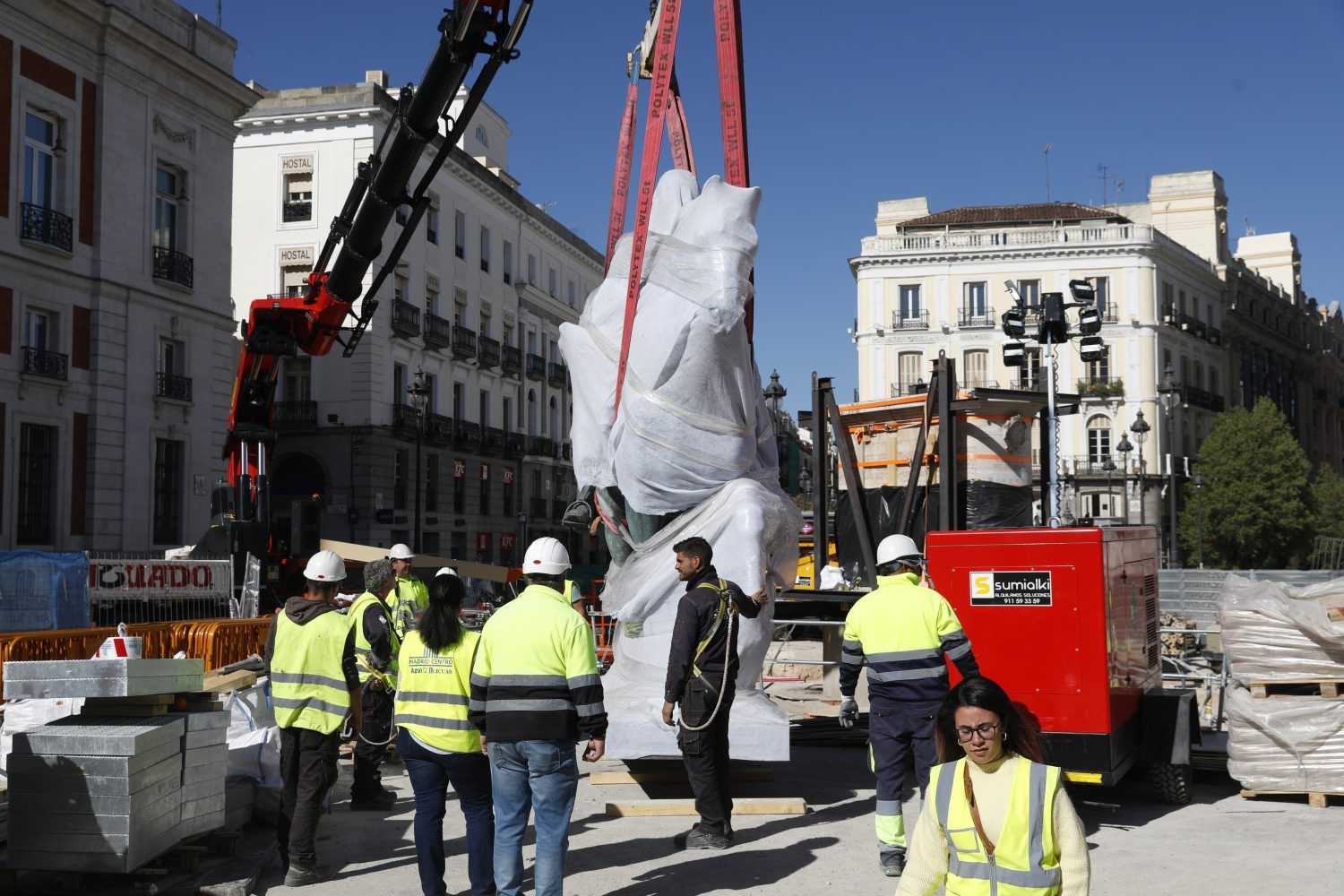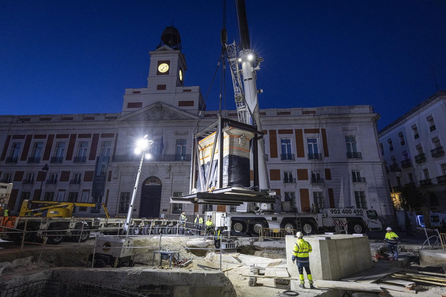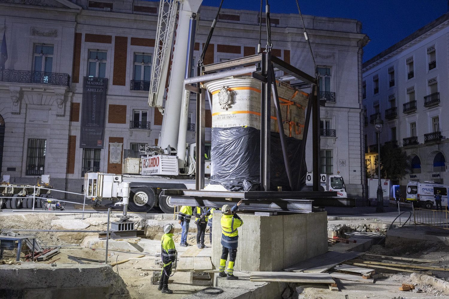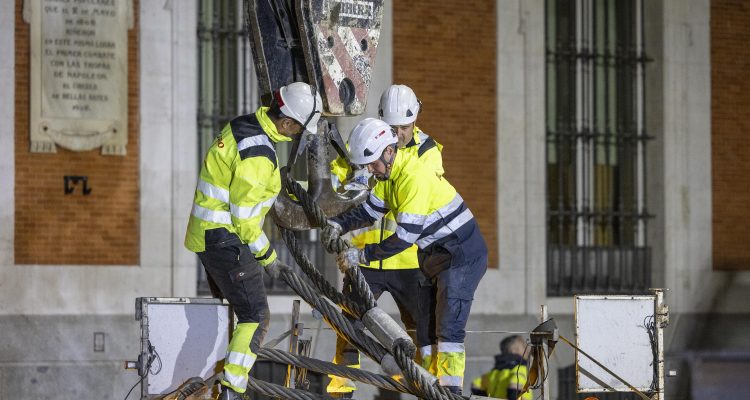 El operativo se ha desarrollado en dos fases. La primera de ellas, realizada en la madrugada del sábado al domingo, consistió en el traslado y colocación del pedestal, para lo que fue necesario el cierre de la plaza por motivos de seguridad. La segunda parte de los trabajos, el traslado de la propia estatua ecuestre, ha tenido lugar esta misma mañana.