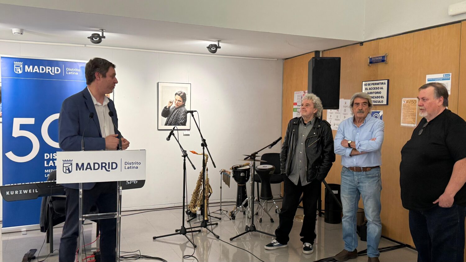 El concejal de Latina, Alberto González, ha inaugurado esta tarde la exposición ‘Dos miradas’, que aúna las trayectorias profesionales de los fotógrafos Vicente López Tofiño y Domingo J. Casas. Esta muestra exhibe sus colecciones de retratos y puede verse hasta el 29 de abril en la Sala de Exposiciones del Auditorio Paco de Lucía. El crítico musical Julio Ruiz ha conducido el acto de presentación, que ha contado con la actuación de la banda Lorenzo Azcona Trio.